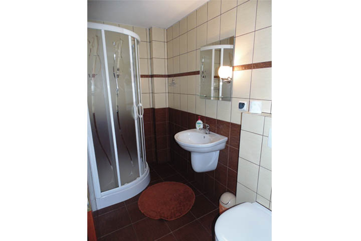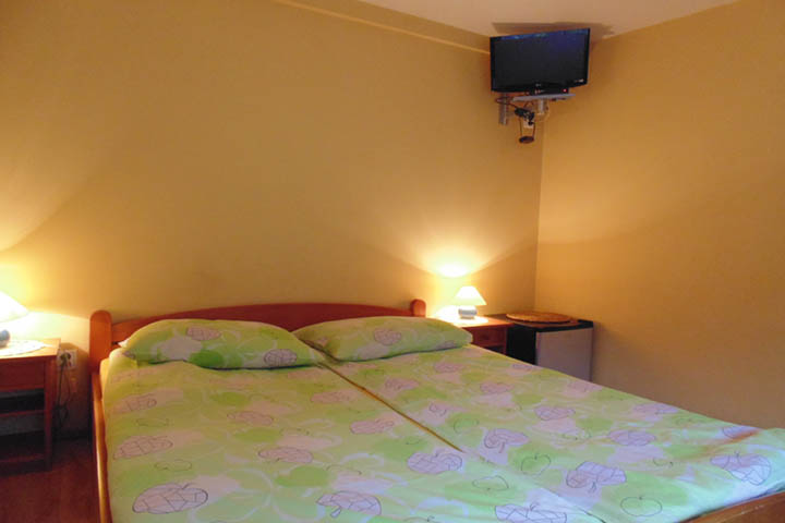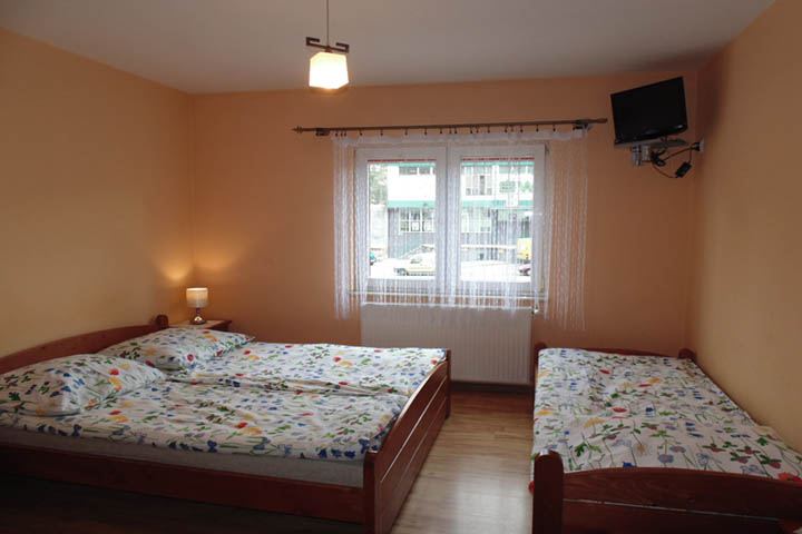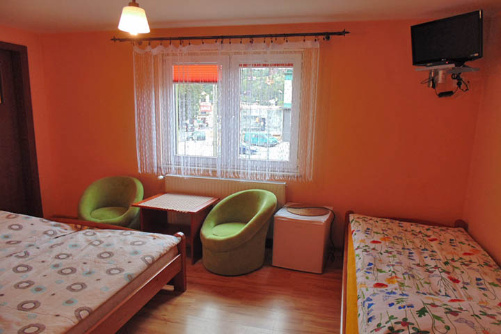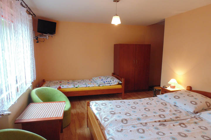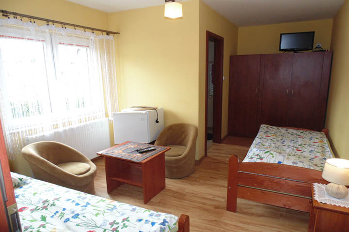 Obiekt dysponuje pokojami dwuosobowymi i trzyosobowymi z łazienką. Pokoje mają na wyposażeniu telewizor i lodówkę.